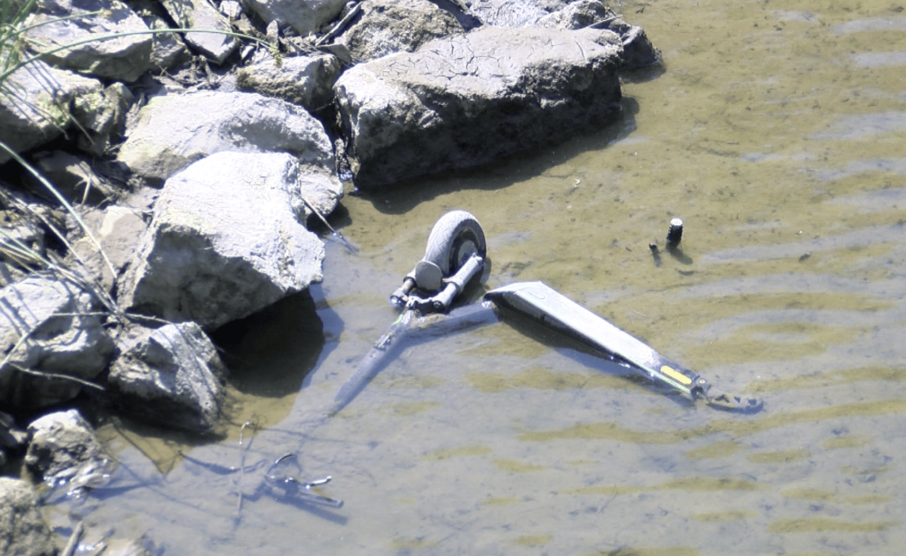 Tuesday afternoon, more than 20 electric scooters were fished from the depths of our river. They recently became visible due to low water levels.
